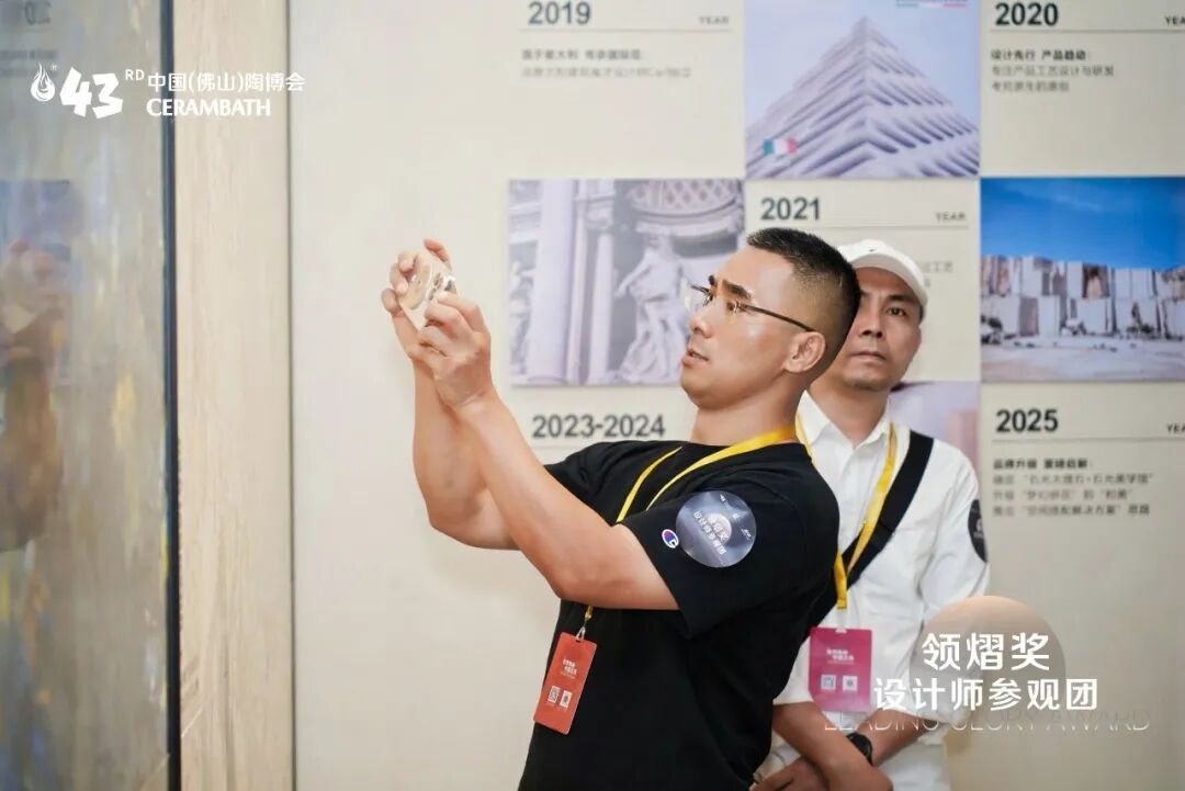 10月18日,中國(佛山)陶博會(huì)·領(lǐng)熠獎(jiǎng)設(shè)計(jì)師參觀團(tuán),走進(jìn)獲獎(jiǎng)品牌展位現(xiàn)場進(jìn)行參觀,同時(shí)針對(duì)當(dāng)下的產(chǎn)品設(shè)計(jì)、空間應(yīng)用、美學(xué)表達(dá)等方面,結(jié)合現(xiàn)場的產(chǎn)品趨勢(shì)進(jìn)行深度交流,進(jìn)一步促進(jìn)陶瓷品牌與設(shè)計(jì)師之間的聯(lián)動(dòng),推動(dòng)陶瓷行業(yè)的創(chuàng)新與變革。
